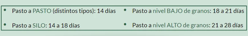 Por ello, es importante conocer el periodo de adaptación del rumen al cambio en el tipo de alimento: