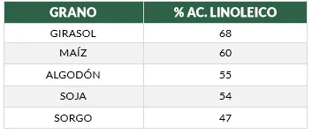 CONTENIDO DE ÁCIDO LINOLEICO DE LOS PRINCIPALES GRANOS Y OLEAGINOSOS