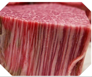 En Wagyu, la grasa se distribuye de manera tan abundante que adopta un patrón visual que se asemeja más al veteado que al marmolado tradicional bovino. Esta composición genera: