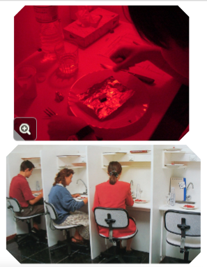 Las evaluaciones se realizan en cabinas individuales, acondicionadas para garantizar neutralidad y concentración. Estas cabinas suelen contar con iluminación controlada (habitualmente luz roja), que enmascara el color de la muestra y evita que influya en la percepción de otros atributos, como el sabor o la textura.
