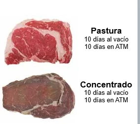 PASTURA VS. CONCENTRADO: COLOR DE CARNE BOVINA ENVASADA 10 DÍAS AL VACÍO Y EN ATMÓSFERA PROTECTORA  (RICHARDSON, 2007)