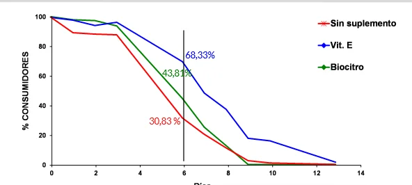 En este estudio vemos cómo el agregado de distintos tipos de antioxidantes (vitamina E y Biocitro) mantienen durante más tiempo el color rojo atractivo de la carne mejorando la intención de compra de los consumidores. Por ejemplo, a los 6 días de exposición en góndola sólo un 30,83% de los consumidores estaba dispuesto a comprar la carne que no tenía ningún tipo de antioxidante incorporado. En cambio, un 43,81% compraría la carne con el agregado de Biocitro y un 68,33% la carne con el agregado de vitamina E.