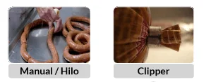 En aquellos productos que se presentan porcionados el atado es fundamental para definir el tamaño y peso de la pieza que sea más adecuado a cada tipo de mercado. El atado puede ser realizado en forma manual utilizando hilo o también ser automatizado, ya sea torcionando o estrangulando el producto sobre su propio eje, atado automático con hilo, o clipeado metálico (con o sin cordel para su colgado). En general en los productos artesanales se prefiere el uso de hilo, mientras que en la escala industrial se busca el atado con clip metálico y cordel para colgado.