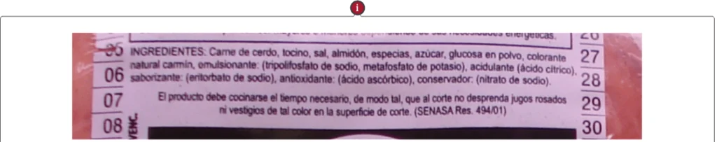 Todo producto alimenticio debe contener en su rótulo o etiqueta la información respectiva de denominación de venta, la lista de ingredientes (en orden decreciente), la identificación de origen (ciudad, país), nombre o razón social del elaborador (y del importador cuando corresponda), la identificación del lote, la fecha de duración o caducidad, las indicaciones de preparación y el rotulado nutricional (valor energético y proporción de componentes: glúcidos, lípidos, proteicos y sodio).