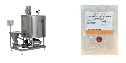 El proceso de aditivado superficial se puede ver mejorado por el masaje en bombos a vacío o tumbler, que acelera los tiempos de proceso. Es aplicable a carne sin hueso, troceada o de poco espesor como la entraña (arrachera).